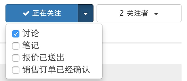 这里的父级:“销售团队已经确认”是定义在销售订单上的子类型,关联字段是销售订单里保存销售团队的字段名。这里配置了的作用是:当销售订单创建的时候会通过订单上的销售团队找到关注他们的销售团队所有关注者,添加到当前订单的关注者列表里。