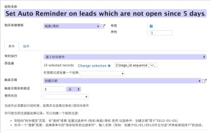 接下来设置动作,这次动作还是比较简单就是提醒用户。动作类型是发邮件,选择好邮件模版,这个自动规则就好了。从此不用再担心线索被冷落了 🙂